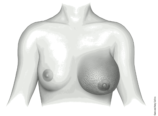 Your doctor will do a clinical breast exam, including a visual check of your breast. The doctor will look for skin color changes that may be caused by cancer cells blocking the lymph nodes and vessels in your breast skin.